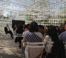 Prior to the official opening of the Serpentine Gallery Pavilion 2013, architect Sou Fujimoto gave a special talk at the Serpentine Gallery taking place inside the structure.