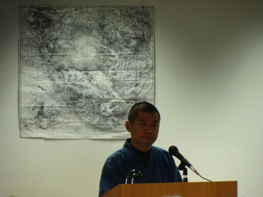 Isshin Inudo introducing Zero Focus through his interpreter (left) at the Showroom Workstation, Sheffield on 8 February 2013 (Image courtesy of Showroom Workstation).