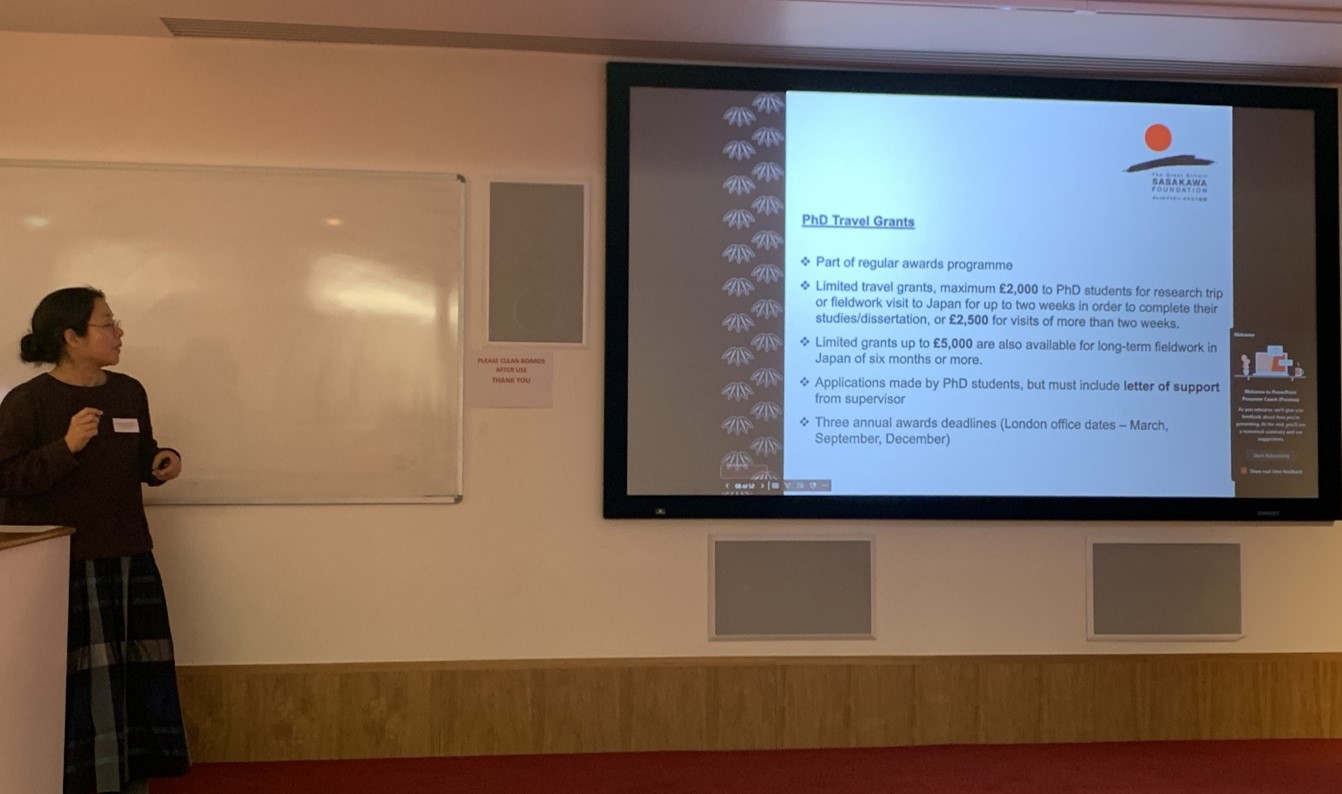 The workshop finished with a session on ‘Funding your Research’ with presentations from Susan Meehan (Daiwa Anglo-Japanese Foundation), Chigusa Ogaya (Japan Society for the Promotion of Science), Rory Steele (Great Britain Sasakawa Foundation), and Julie Anne Robb (Japan Foundation) introducing the wide range of funding programmes available to researchers in Japanese Studies.
