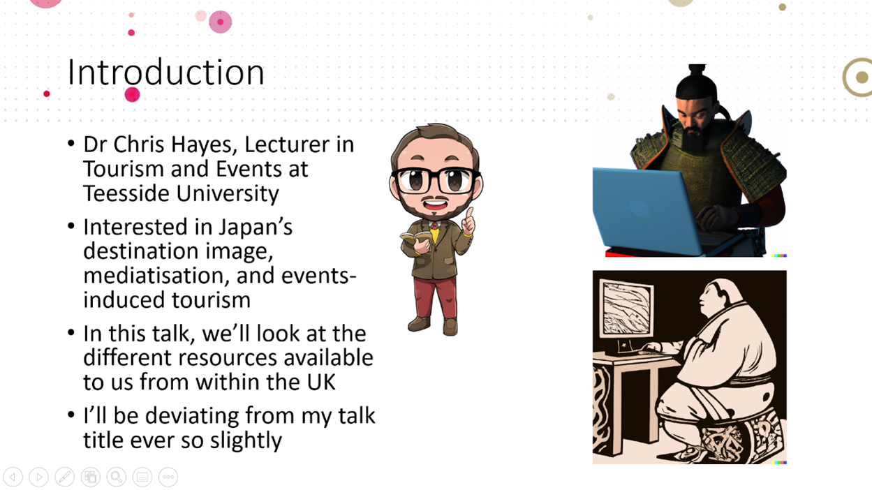 Dr Crombie then gave an introduction to what Japanese research looks like at an institution like Lancaster University, that does not have a dedicated Japanese degree programme, but still attracts and employs academics and researchers who have an interest in Japan.