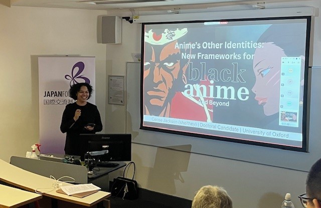 This led us neatly into the first panel, ‘Anime, Nation and Race’. Zizhou Zhang (PhD candidate, University of East Anglia) delved into ‘Donghua’, or Chinese animation, and how the Chinese animation industry has started to develop its own culturally distinct identity. Khushboo Bansal (PhD candidate, University of Delhi) spoke about the role of Indian broadcast censorship in shaping Anime Narratives for Domestic Viewers. Cerise Jackson (PhD candidate, University of Oxford)’s talk on New Frameworks for ‘Black Anime’ and Beyond considered the depictions of black people in anime and what constitutes ‘Black Anime’, as well as the clear need for further research on the topic.