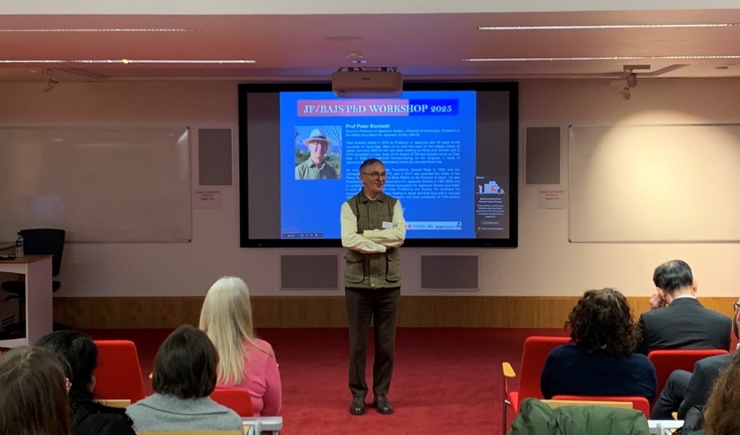 During the day four PhD students presented their research and received constructive comments and questions from fellow-postgraduate students and senior academics in discussion sessions chaired by BAJS President Professor Caroline Rose. The four presentations were chosen from a number of excellent and diverse proposals, and covered topics ranging from disaster mental health in Japan (Ben Epstein, UCL), technology and Japan in the British press (Christopher Hayes, Cardiff University), ‘Expressive’ women and Western attire in Japanese cinema (Lois Barnett, SOAS, University of London), and child guidance centres in Japan (Michael King, University of Oxford).