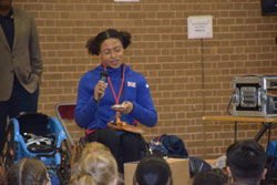 Later in the afternoon, we were joined in the Language Show’s Piazza by representatives of the Japan Sport Council, and Paralympian Gold Medallist (and fluent Japanese speaker) Noel Thatcher, to introduce Japanese “radio exercises” or rajio taisoo. First, Noel told us a little bit about what it means to be a Paralympian and the many ways his Japanese language skills have contributed towards his life. Next, Ukai-sensei from the Japan Foundation taught the audience how to count in Japanese and were then given opportunity to practise their new language skills together with trying rajio taisoo for themselves, led by Noel. You can try out rajio taisoo for yourself by watching the video and viewing more information at our Marugoto Life & Culture Lab website.