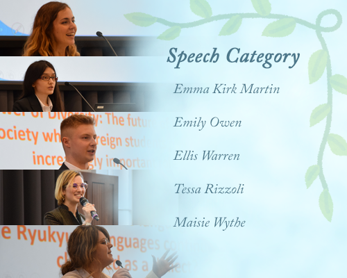The first category of the day was the Speech Category, and our four brilliant speech category finalists delivered their speeches in front of a live audience and a panel of judges. Finalists spoke on a variety of topics such as the issue of over tourism in Japan and the appeal of Shogi, a Japanese two-player strategy board game.