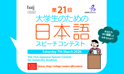 This contest gives students the chance to demonstrate their Japanese speaking skills and to make their voices heard in Japanese. Finalists will be invited to give their speeches and presentations at the Speech Contest Finals Day, which will be held at King’s College London on Saturday 7th March 2026.