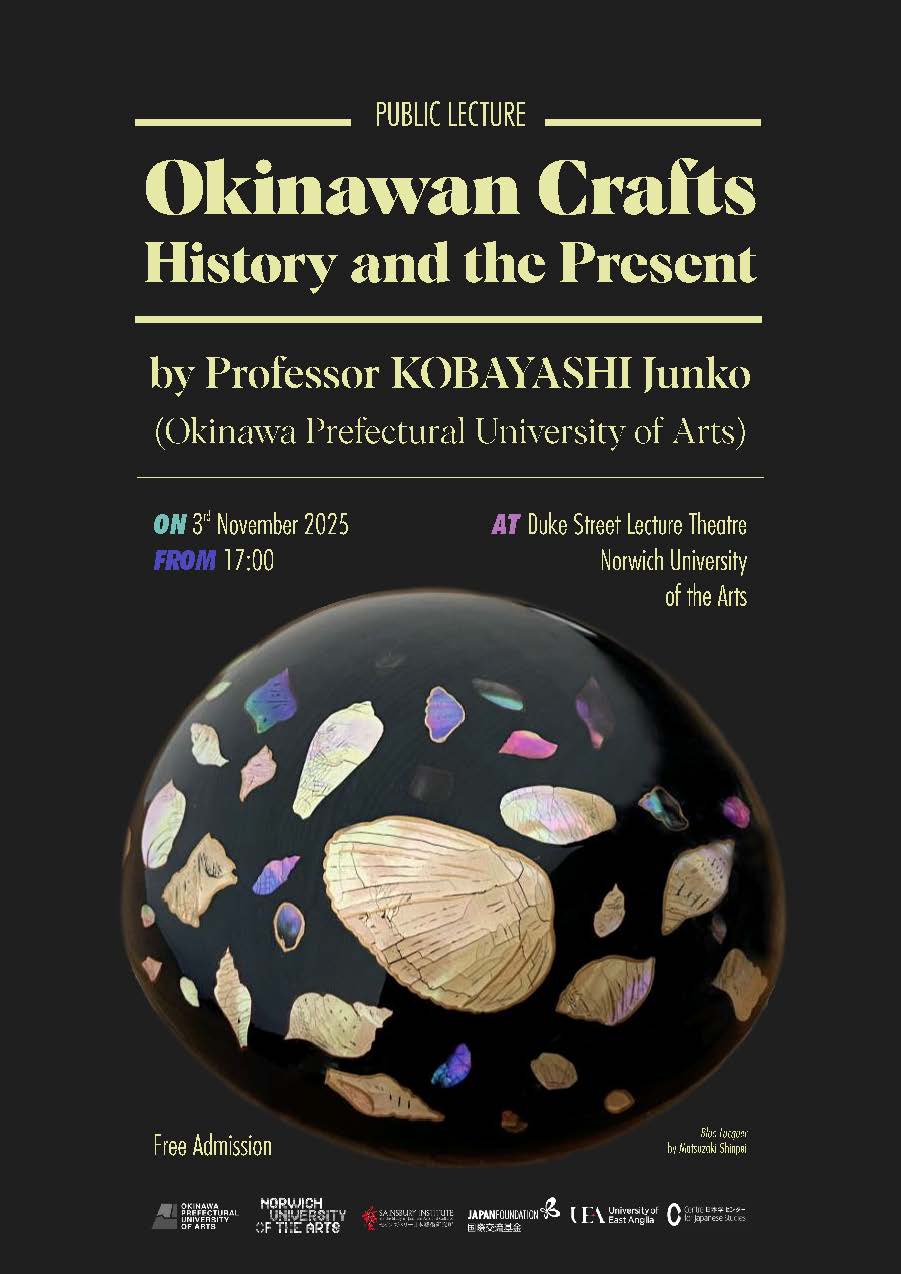 The lecture is part of the accompanying programme for the exhibition ‘Okinawan Kogei: Crafting Continuity and Change’ that runs from Wednesday 29 October – Saturday 1 November, at the Crypt Gallery, Norwich.